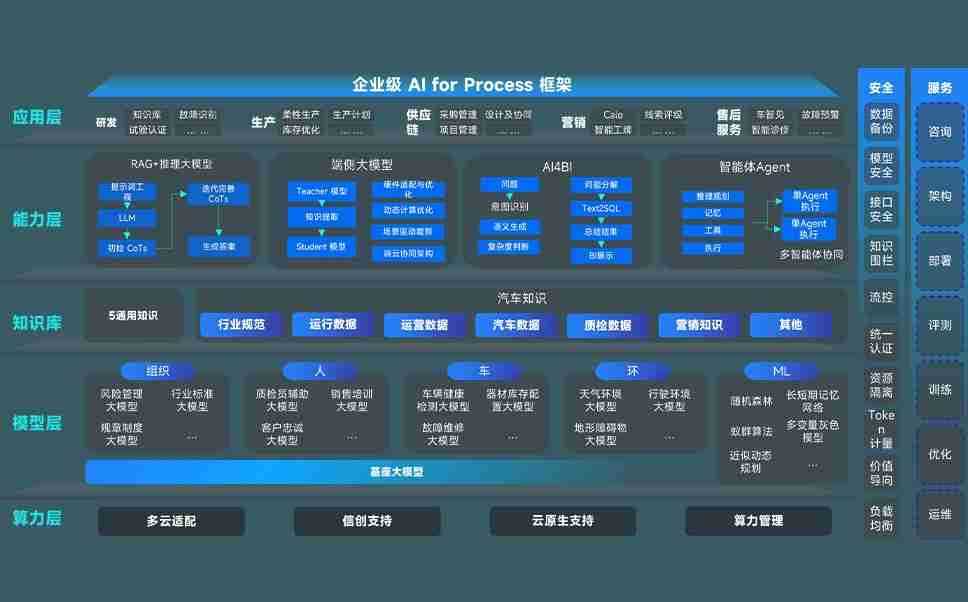 端到端的一站式AI工作空间深度融合了从企业战略规划到日常经营的全流程业务板块,,定向解决车企内部领域多、、部门多、、、链条长、、场景碎片化等难题,,,支持车企快速构建以AI为核心的生产力写作体系,,实现任务执行与AI能力的无缝集成与交互